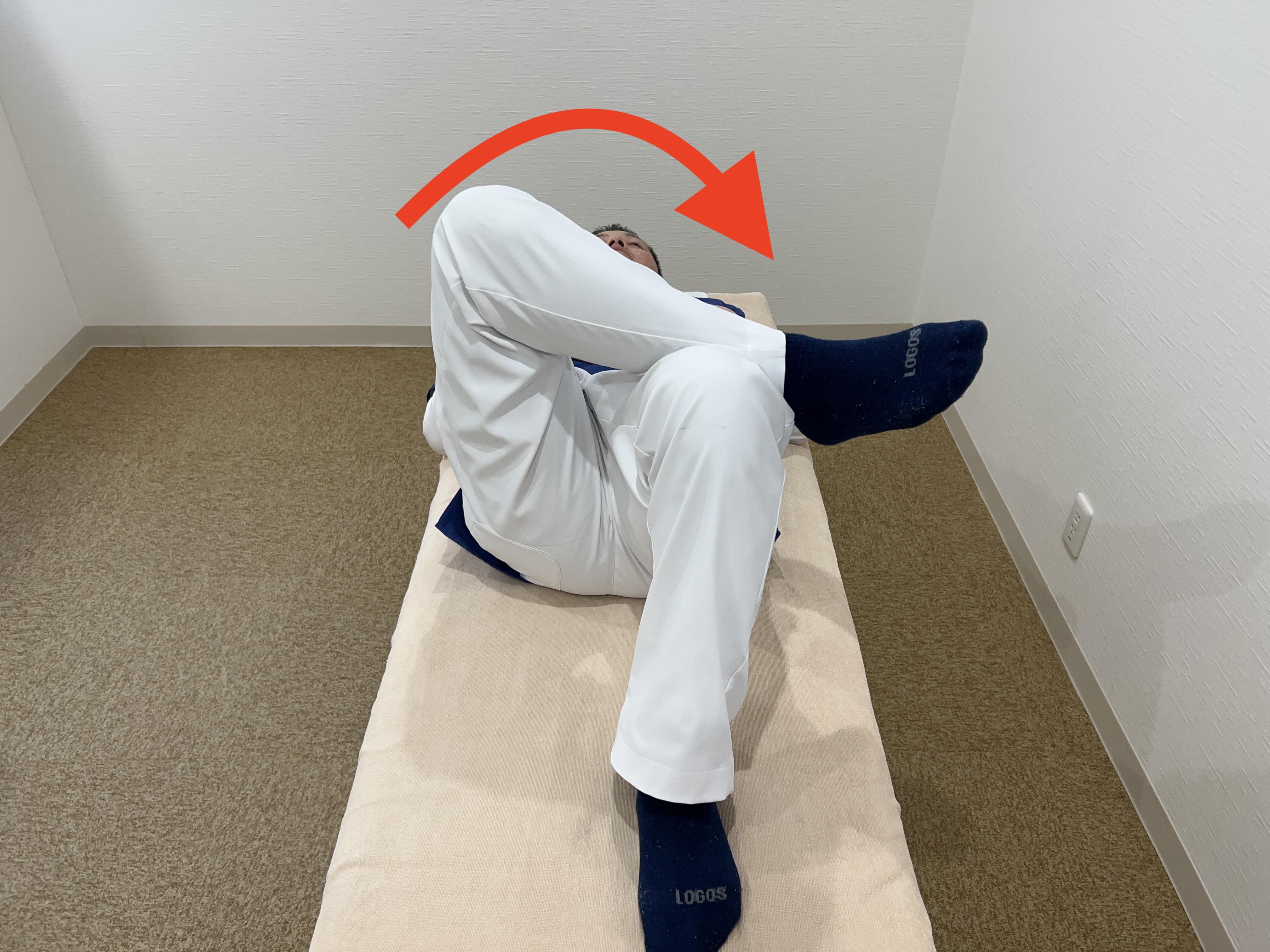 2.右足を左足の上に乗せる