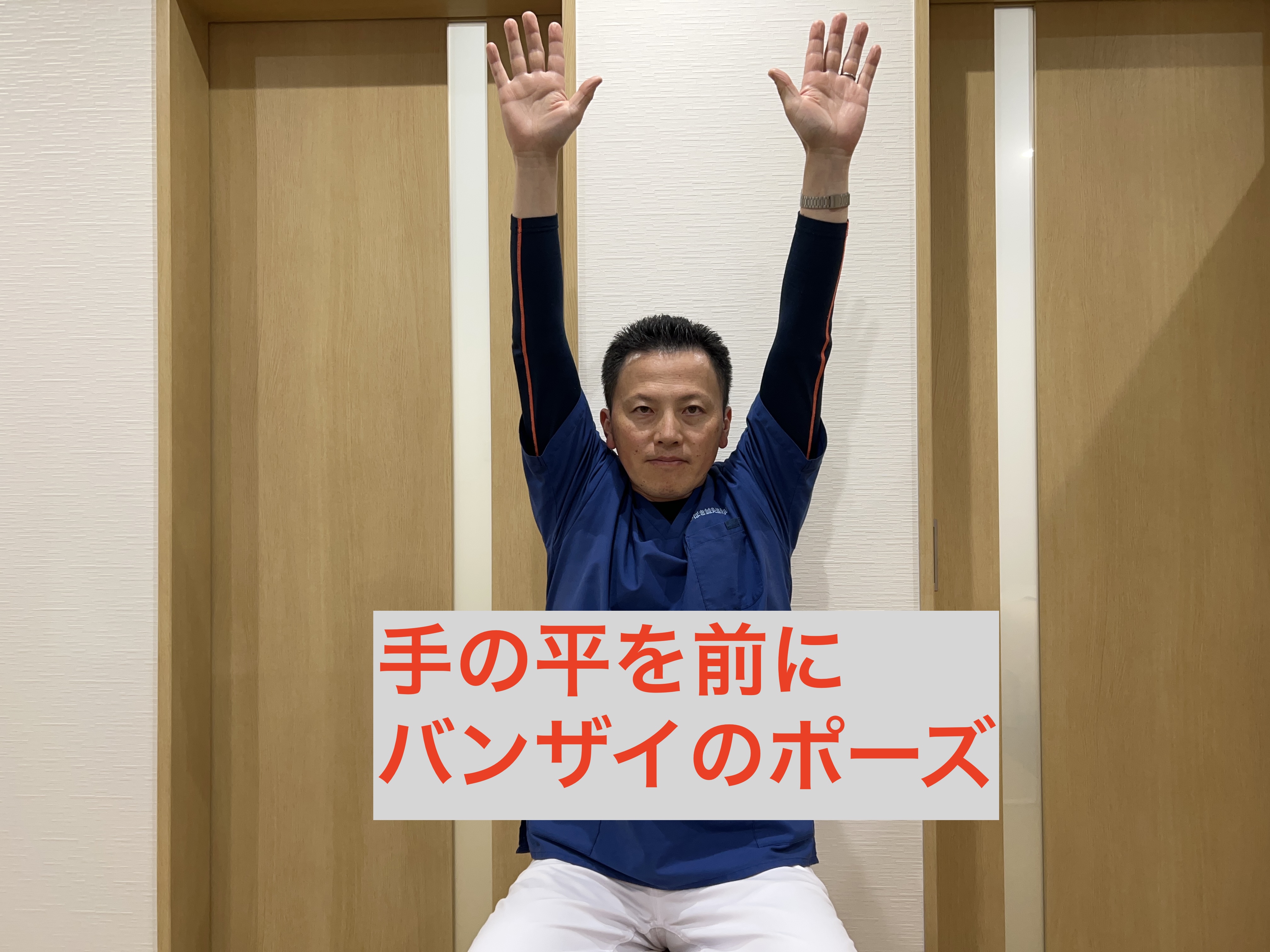 手のひらを前にして両手を伸ばす、曲げるを10回繰り返す